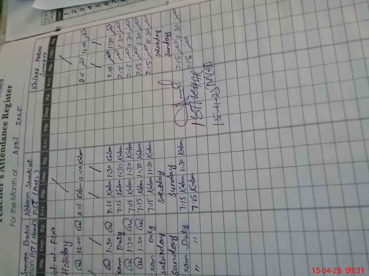 | CNIC | Full Name | Designation | R/C | Absence During Last Calender Month |