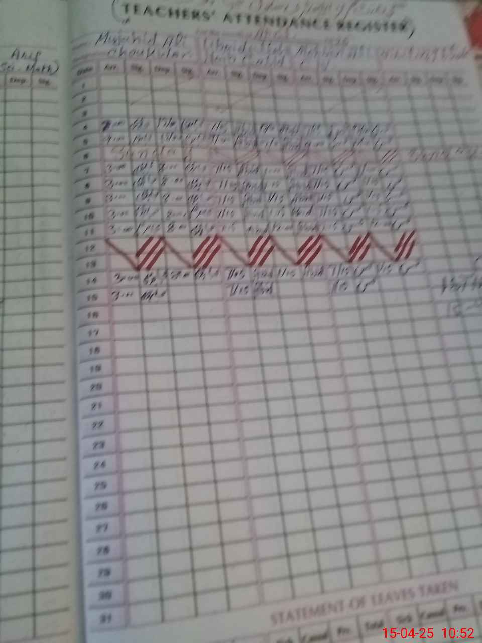 | No. of Students Present - Male | 0 | 0 | 0 | 0 | 0 | 0 | 0 | 0 | 0 | 0 | 0 | 0 | ||||