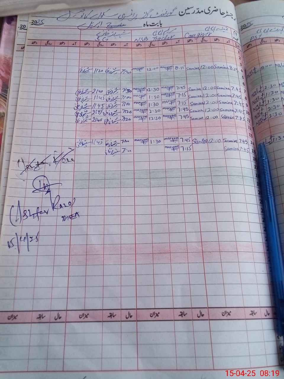| CNIC | Full Name | Designation | R/C | Absence During Last Calender Month |