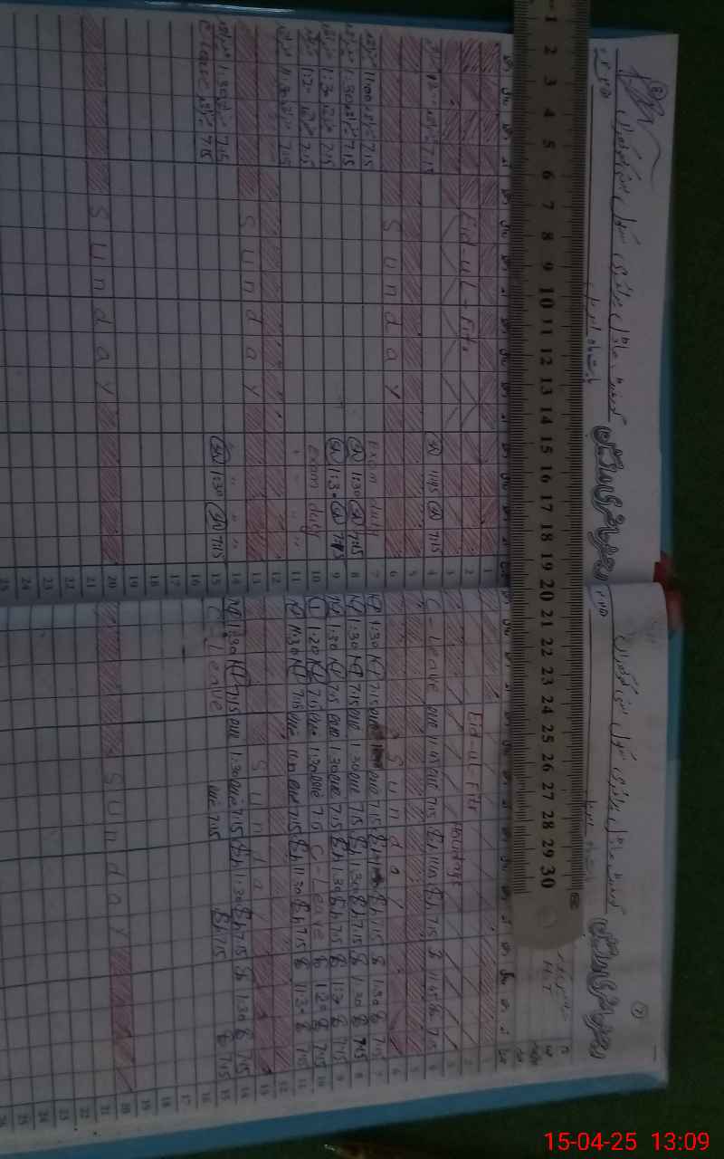 | CNIC | Full Name | Designation | R/C | Absence During Last Calender Month |