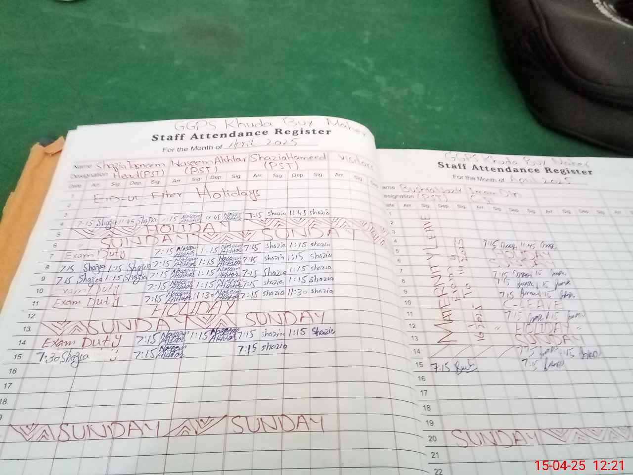 | Leave | Duty | Absent | Maternity | Medical | Ex- Pak |
