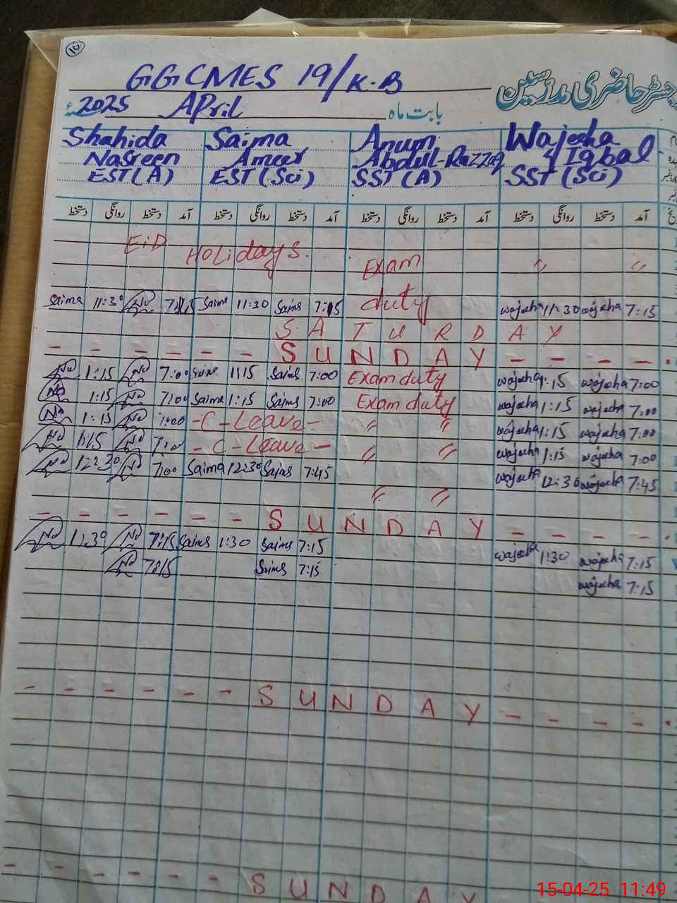 | 36**** | An**** Ab**** Ra**** | Contract | 2 | 5 | 0 | 0 | 0 | 0 | 0 | 0 | 2 | Exam Duty | |