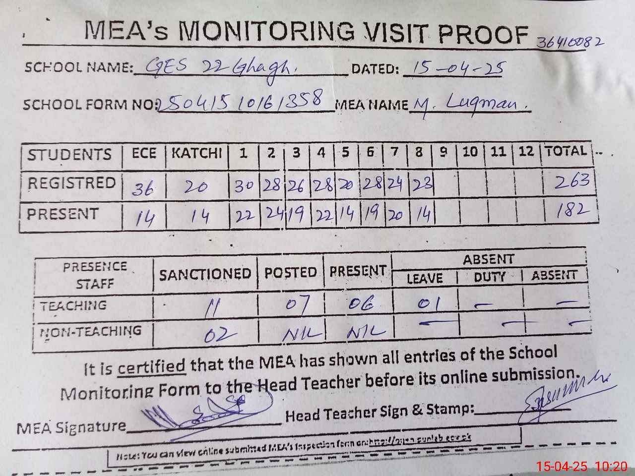 | EMIS Code: 36410082 | Name of School: GES 22 GHAGH, P/O 25 PUL, ABDUL HAKIM | |||
