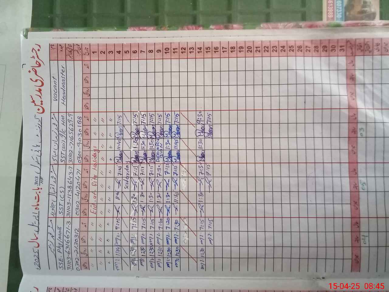 | Name: MZa**** Designation: (School Headmaster's/Headmistress's) Head Master Phone/Cell Number: 03**** |