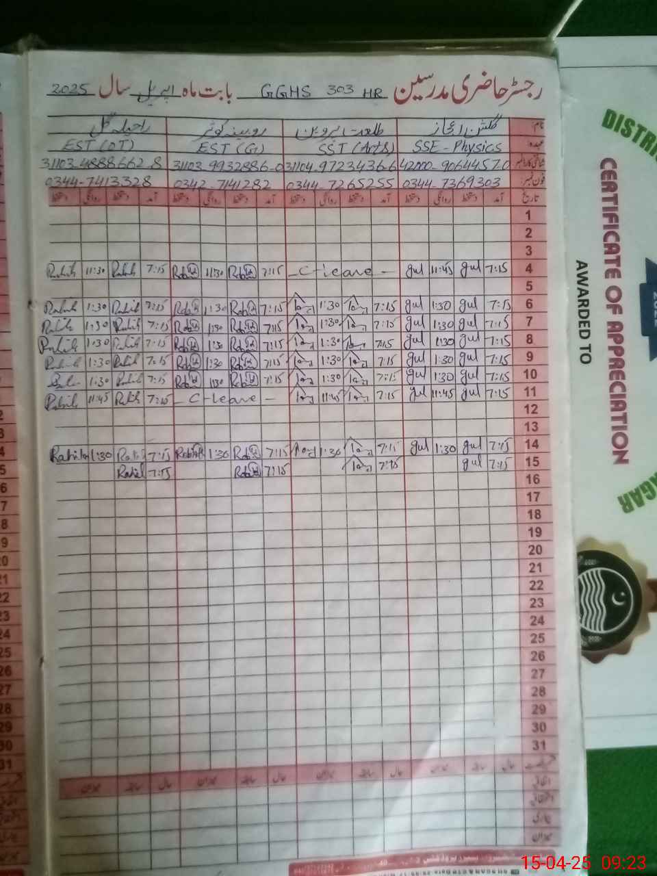 | Name: Gu**** Ij**** Designation: (School Headmaster's/Headmistress's) SSE (Phics) Phone/Cell Number: 03**** |