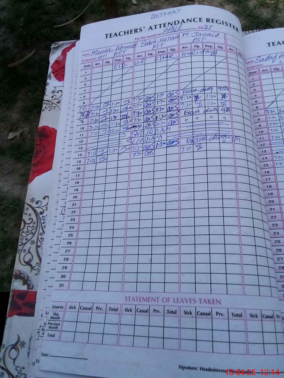 | Name: MU**** AH**** Designation: (School Headmaster's/Headmistress's) PST Phone/Cell Number: 03**** |
