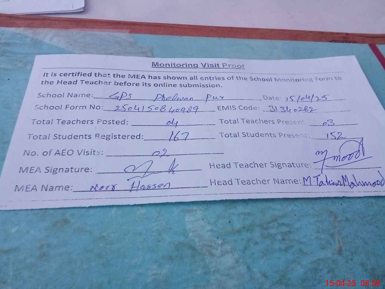 | EMIS Code: 31340282 | Name of School: GPS PEHLWAN PUR | |||