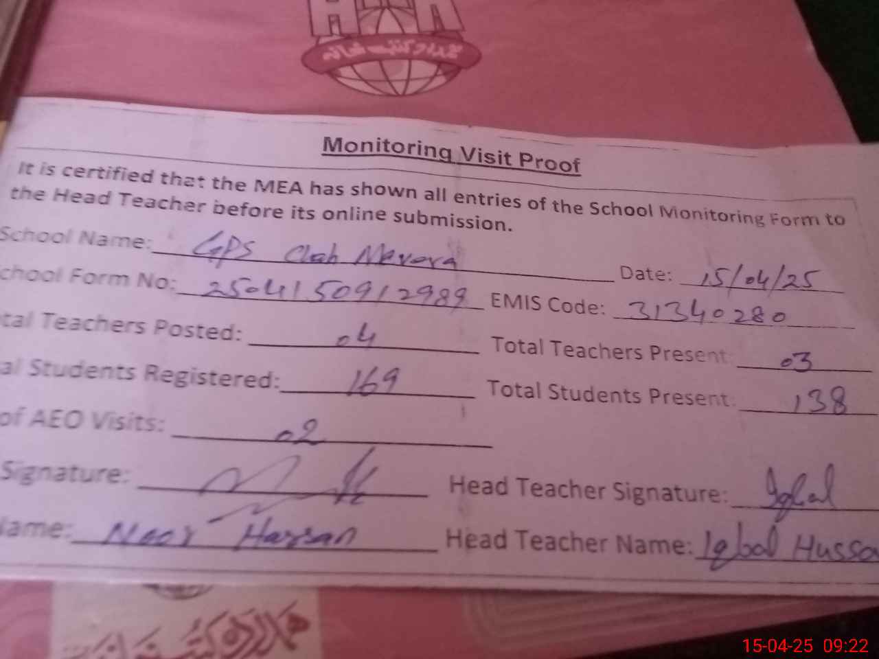| EMIS Code: 31340280 | Name of School: GPS CHAH MEVRA | |||