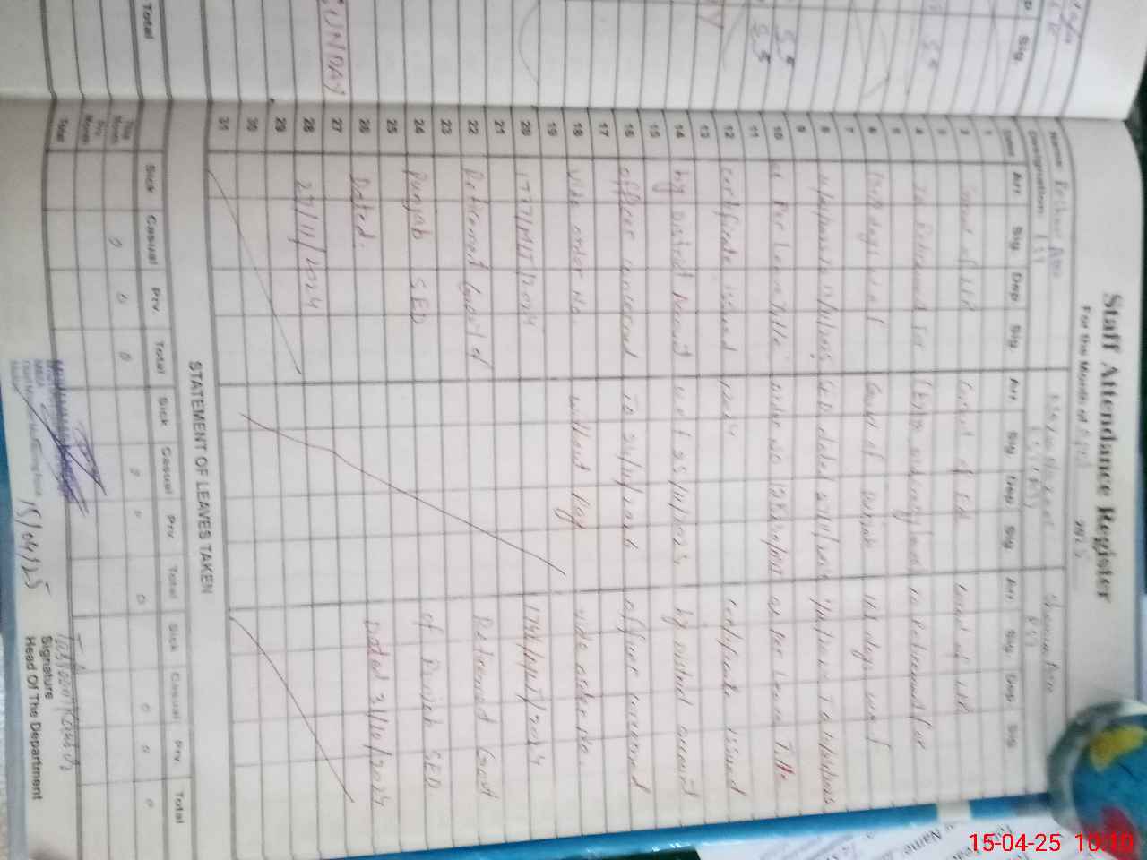 | No. of Students Present - Female | 0 | 0 | 28 | 50 | 50 | 50 | 56 | 50 | 39 | 56 | 56 | 32 | 40 | 507 | ||