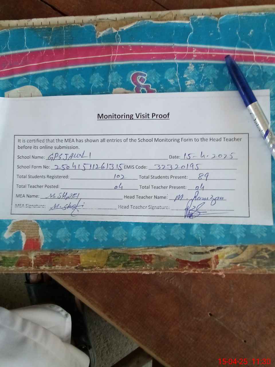 | EMIS Code: 32320195 | Name of School: GPS JAWALI | |||