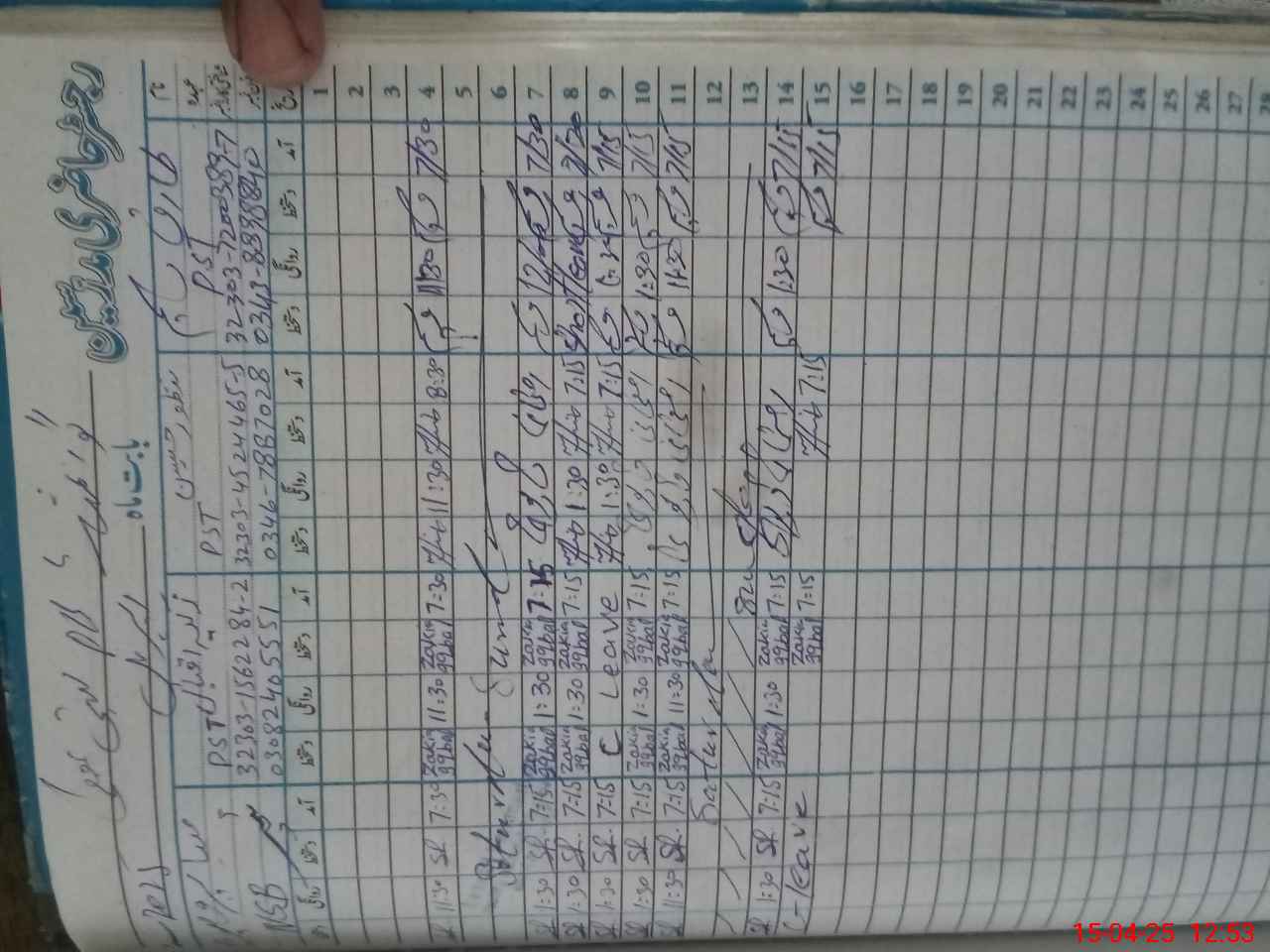| Leave | Duty | Absent | Maternity | Medical | Ex- Pak |