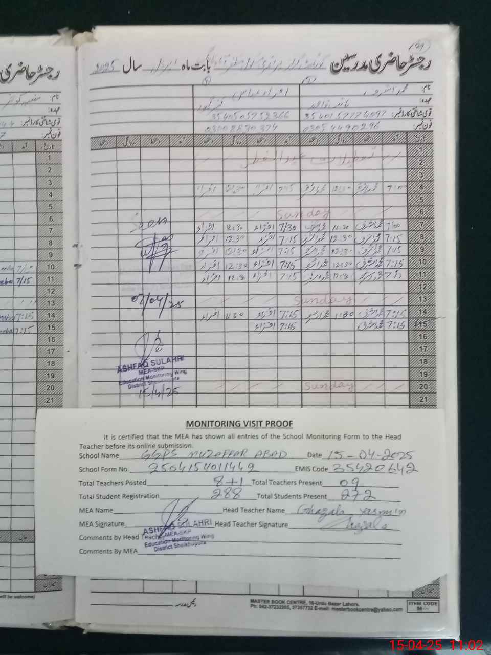 | EMIS Code: 35420642 | Name of School: GGPS MUZAFFAR ABAD | |||
