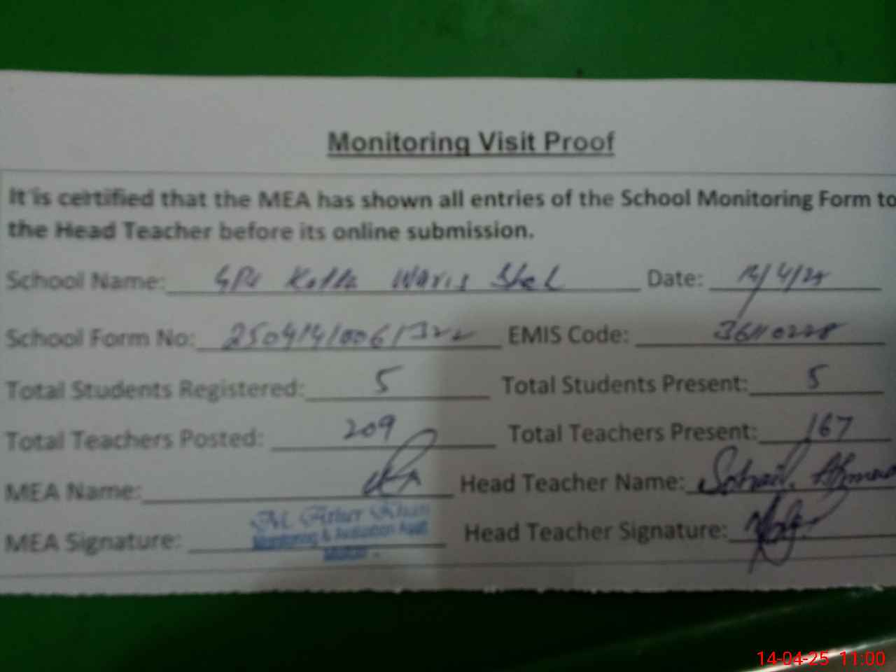 | EMIS Code: 36110228 | Name of School: GPS KOTLA WARIS SHAH | |||