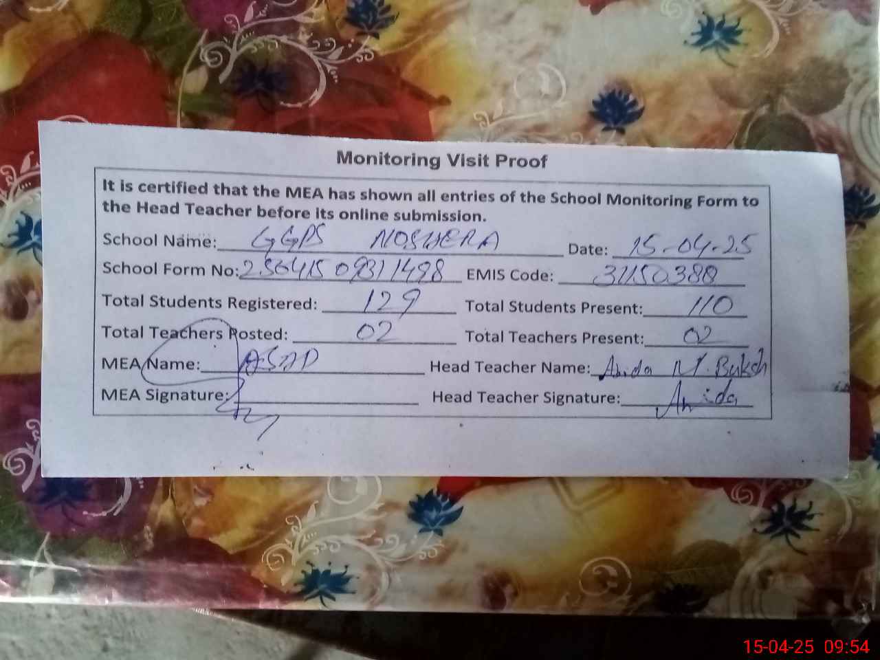 | EMIS Code: 31150388 | Name of School: GGPS NOSHERA | |||