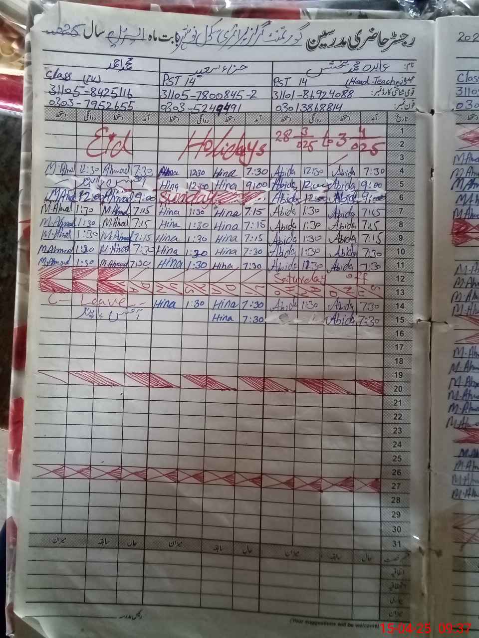 | Name: AB**** BU**** Designation: (School Headmaster's/Headmistress's) PST Phone/Cell Number: 03**** |