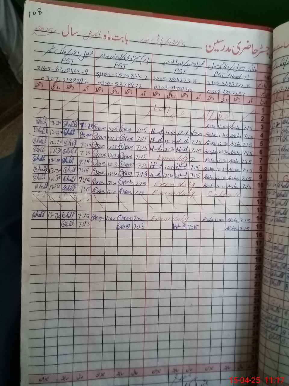 | Name: Ay**** Ra**** Designation: (School Headmaster's/Headmistress's) PST Phone/Cell Number: 03**** |