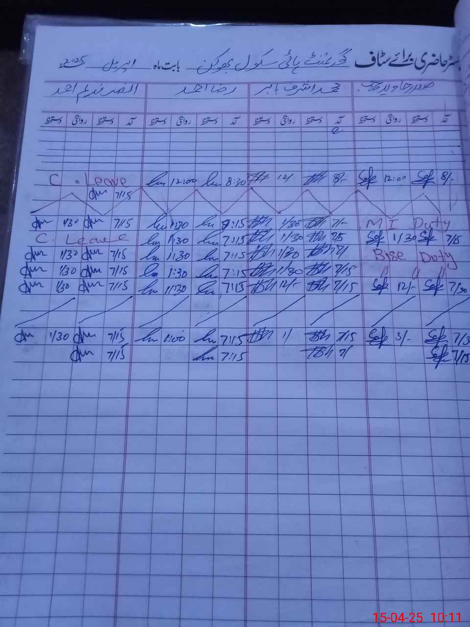 | Leave | Duty | Absent | Maternity | Medical | Ex- Pak |