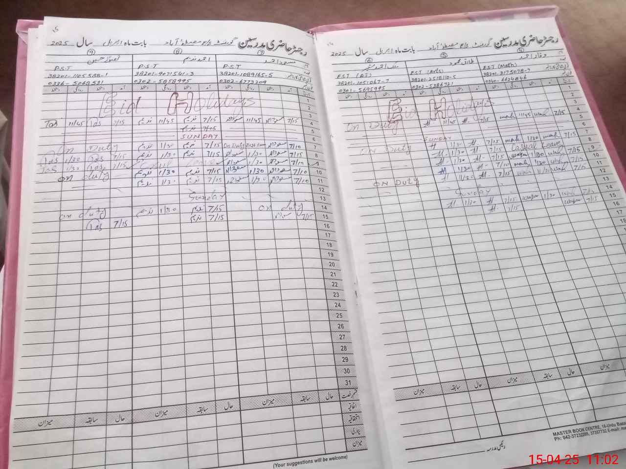 | 38**** | Ah**** Sh**** | EST | Regular | 0 | 0 | 0 | 0 | 0 | 0 | 0 | 0 | 0 | Exam Duty |