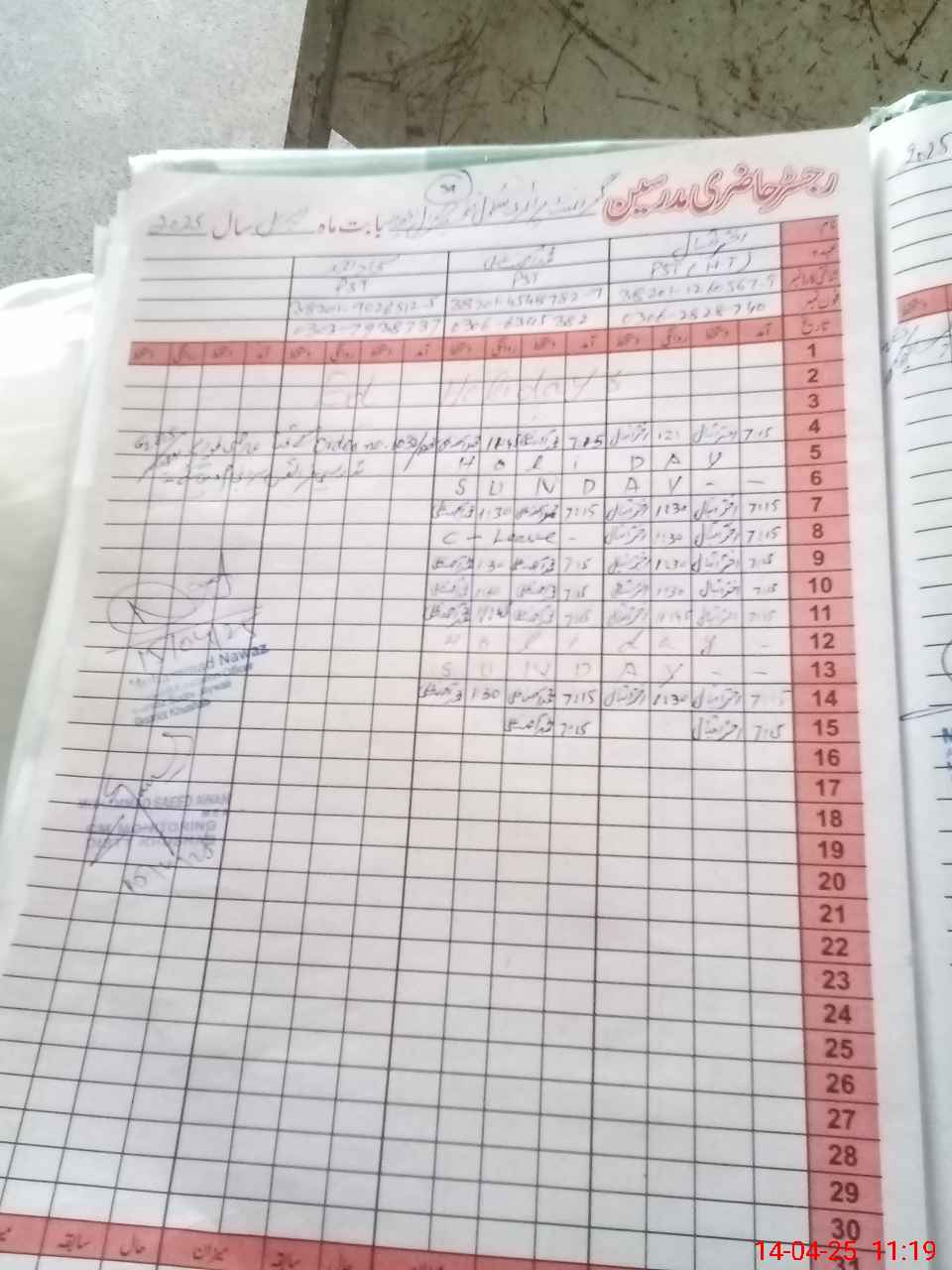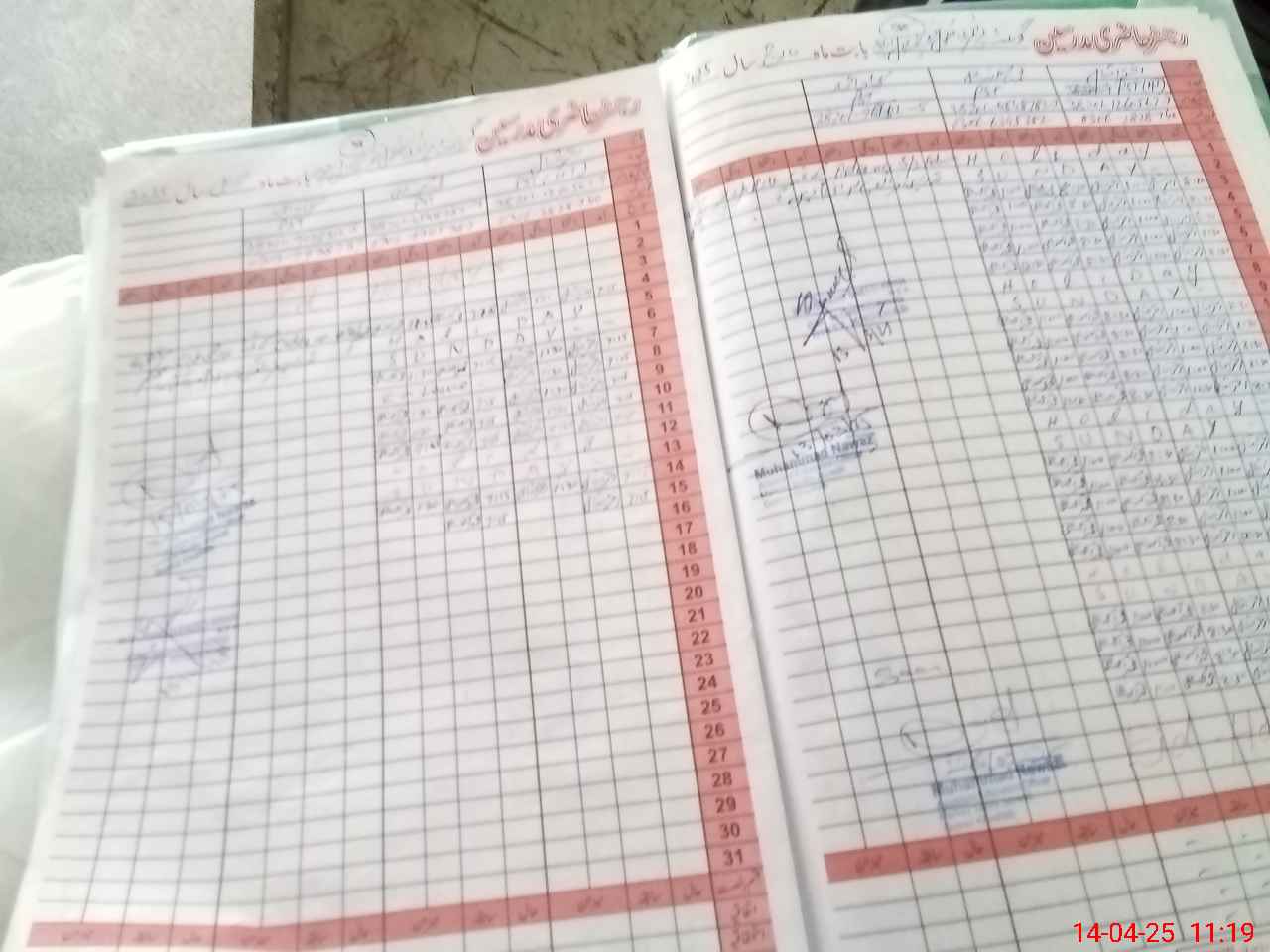 | CNIC | Full Name | Designation | R/C | Absence During Last Calender Month |