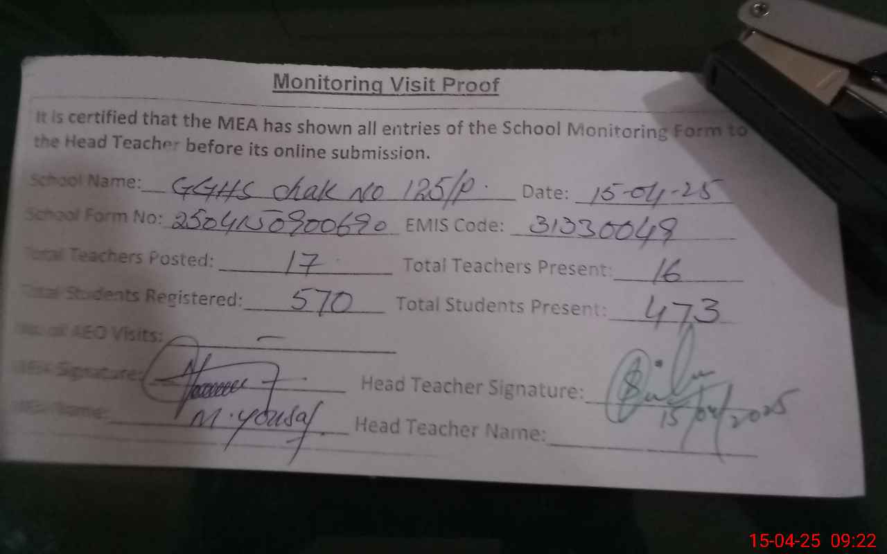 | EMIS Code: 31330049 | Name of School: GGHS CHAK NO. 125/P | |||