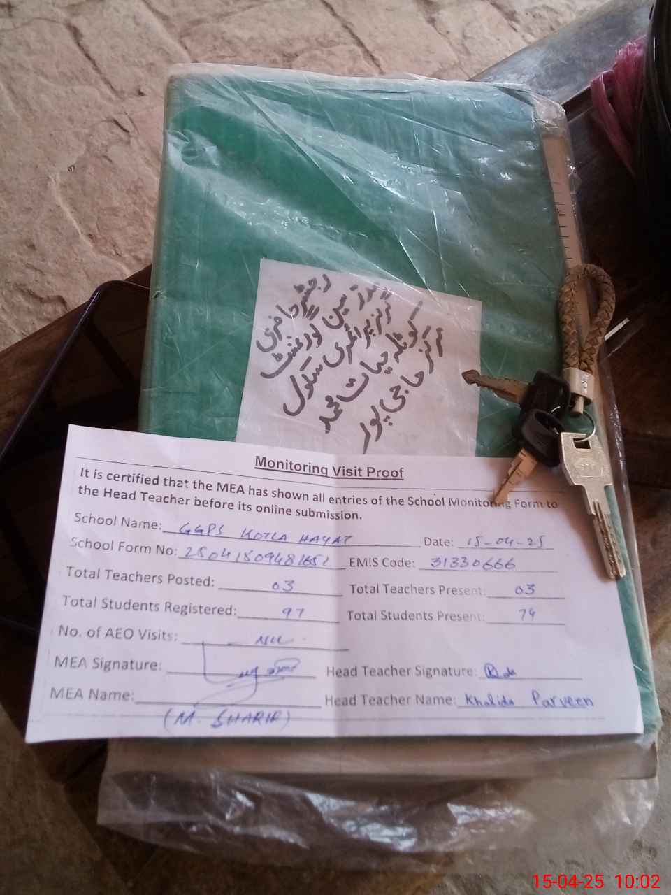 | EMIS Code: 31330666 | Name of School: GGPS KOTLA HAYAT MUHAMMAD | |||