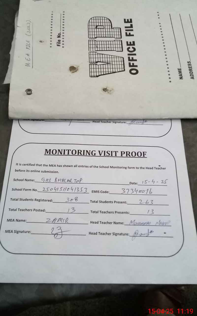 | EMIS Code: 37340016 | Name of School: GHS BHALLARTOP | |||