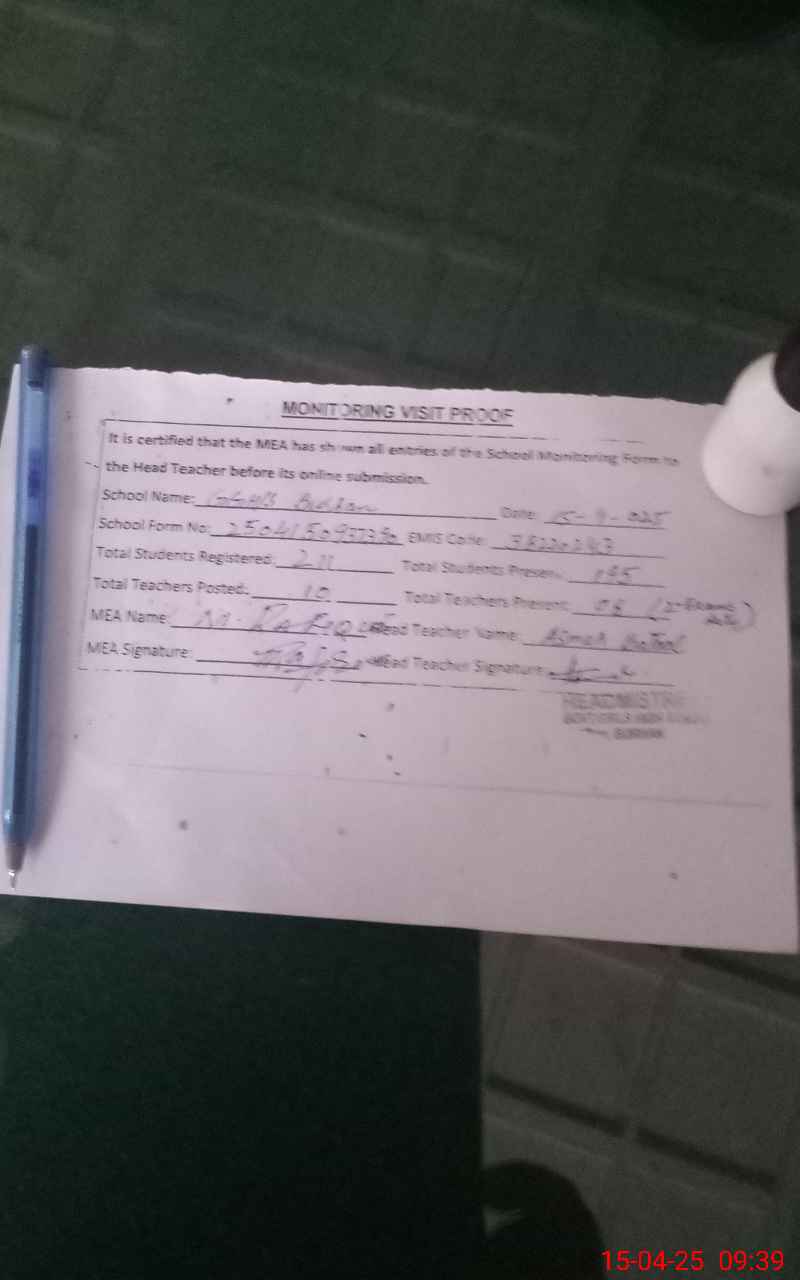 | Attendance Register | Head Teacher | MEA with School | Visit Proof |