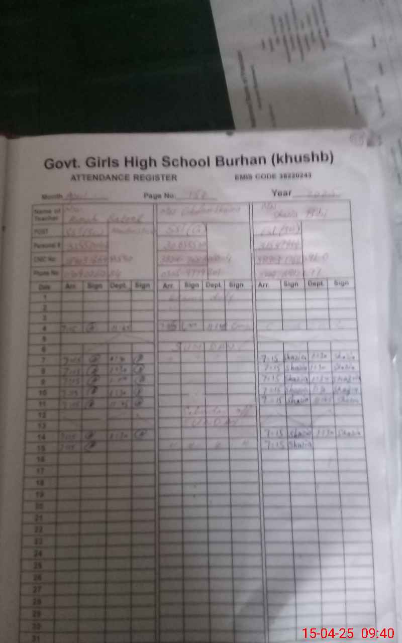 | EMIS Code: 38220243 | Name of School: GGHS BURHAN | |||