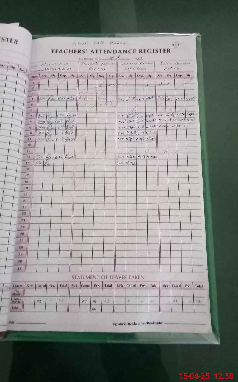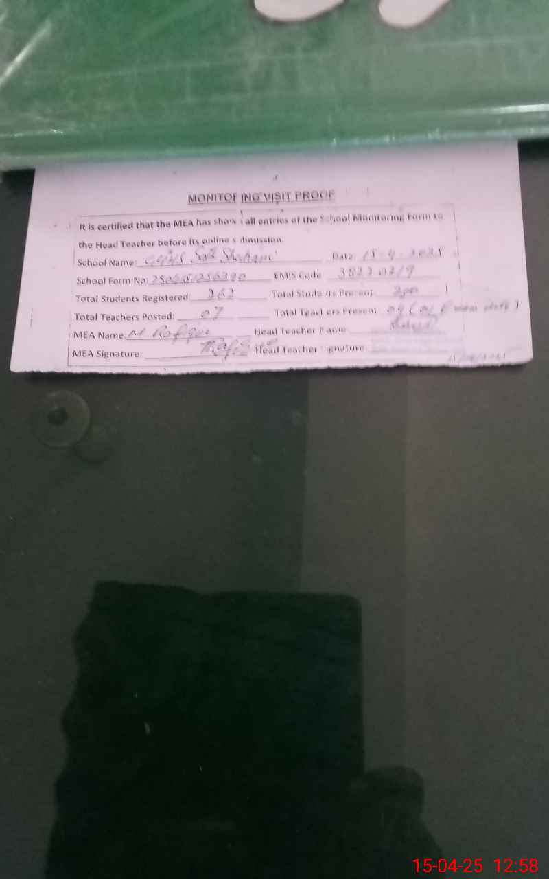 | Attendance Register | Head Teacher | MEA with School | Visit Proof |