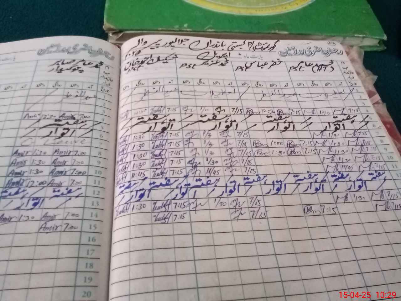 | CNIC | Full Name | Designation | R/C | Absence During Last Calender Month |