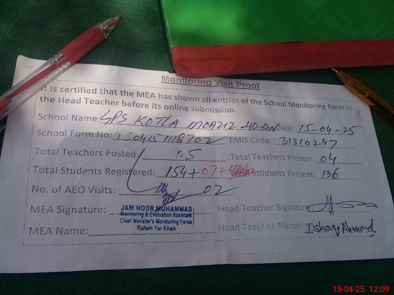 | EMIS Code: 31310247 | Name of School: GPS KOTLA MOAZIZ-UD-DIN | |||