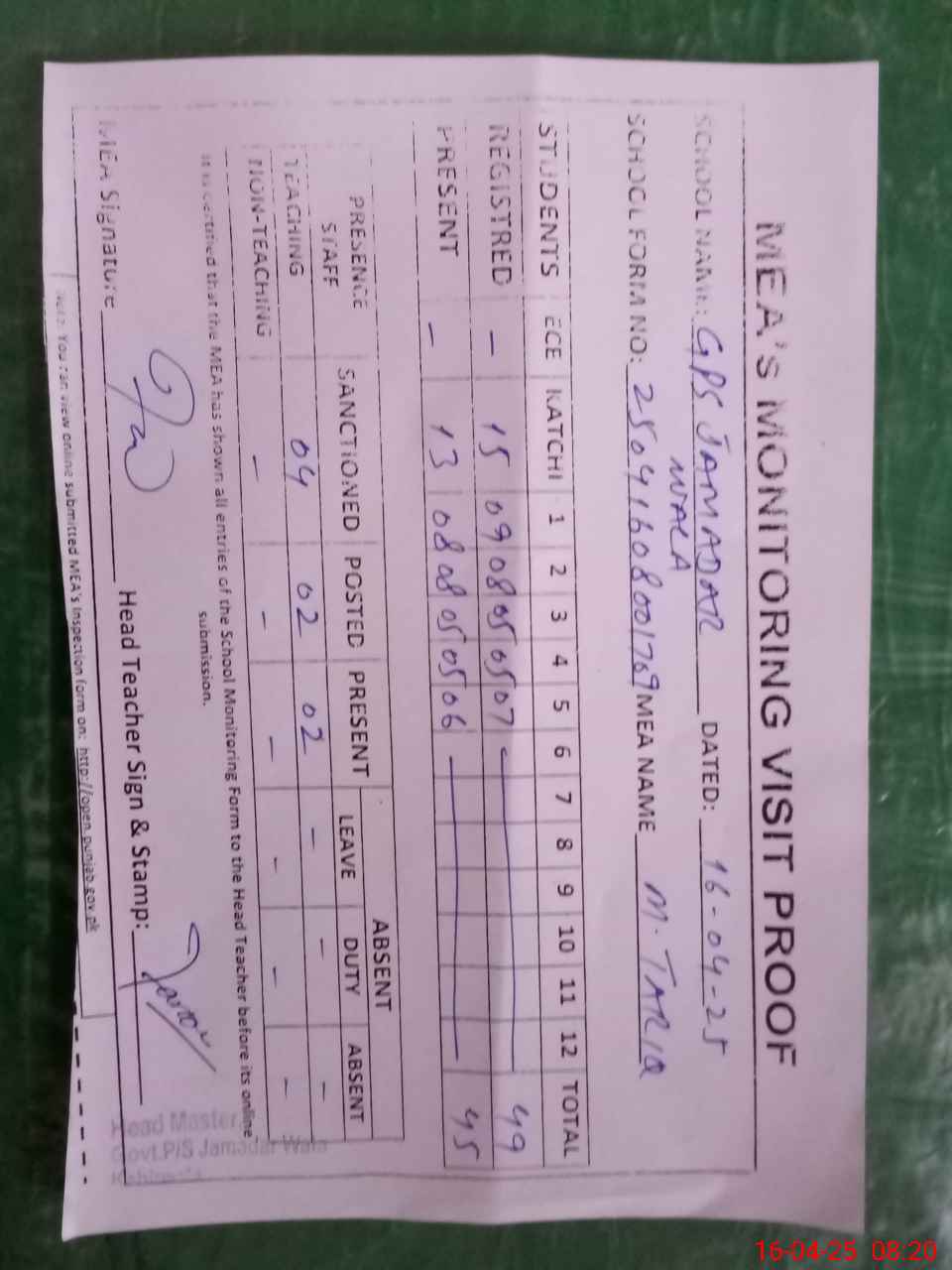 | EMIS Code: 36410653 | Name of School: GPS JAMADAR WALA | |||