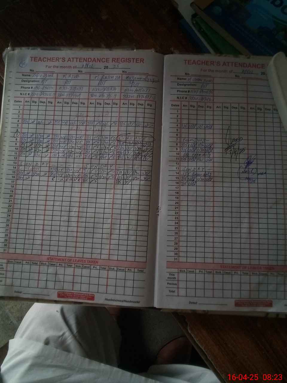| CNIC | Full Name | Designation | R/C | Absence During Last Calender Month |
