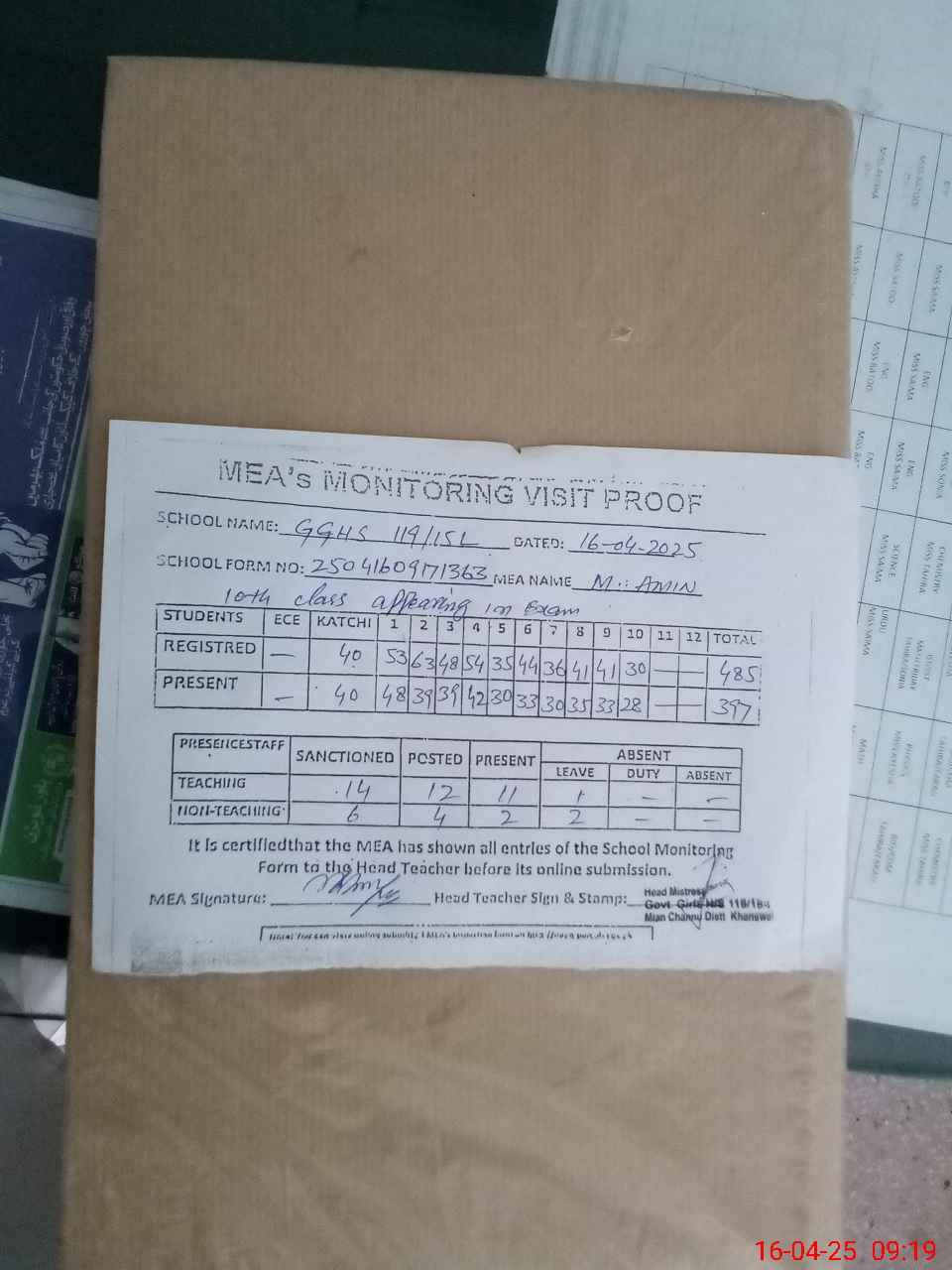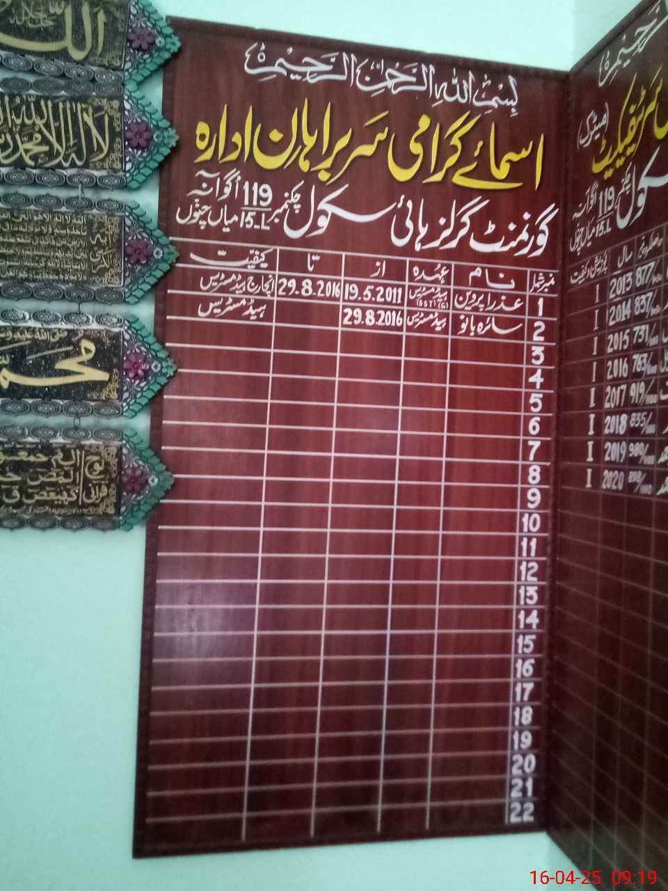 | EMIS Code: 36430090 | Name of School: GGHS 119/15-L, MIAN CHANNU | |||