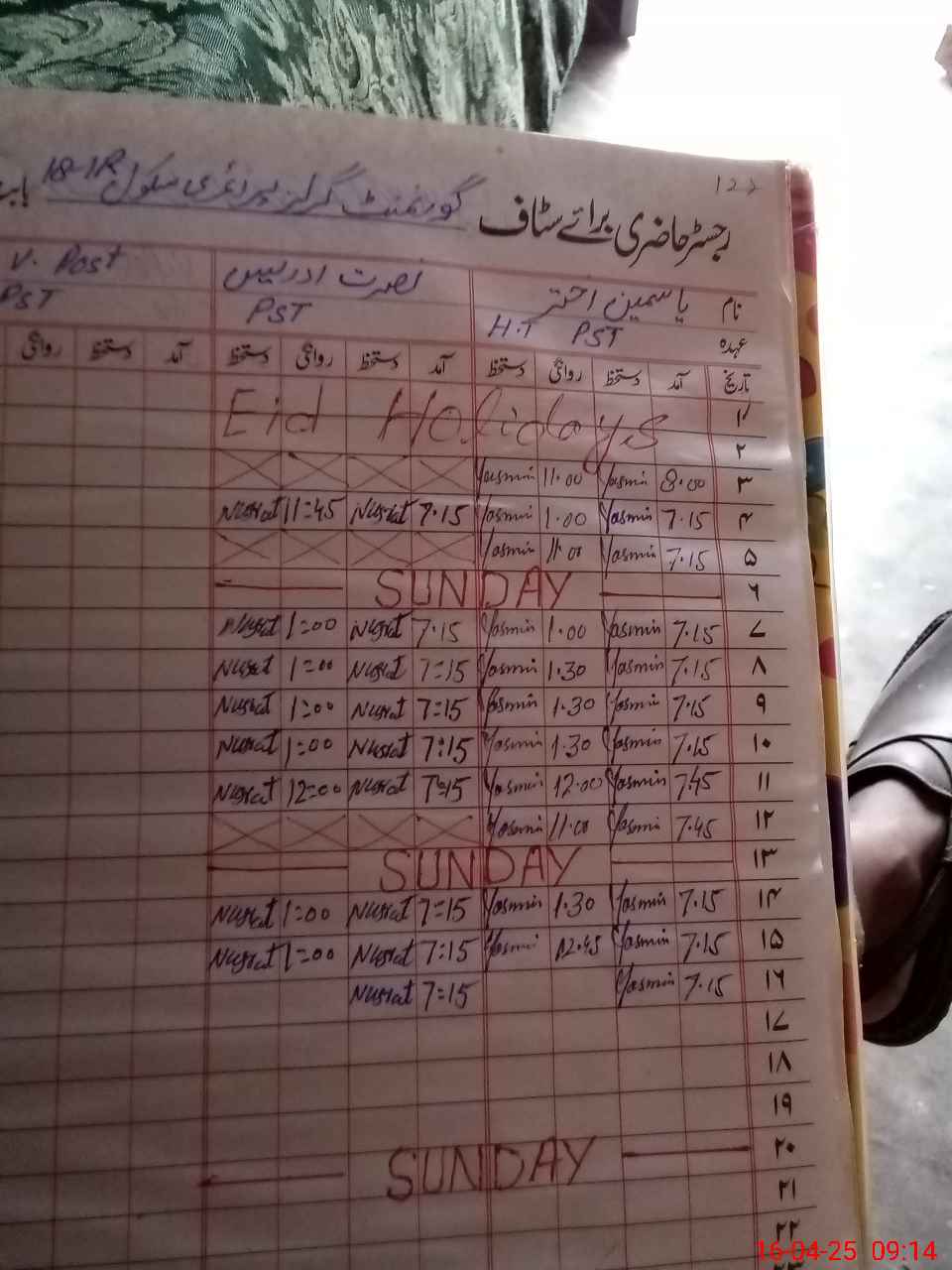 | CNIC | Full Name | Designation | R/C | Absence During Last Calender Month |