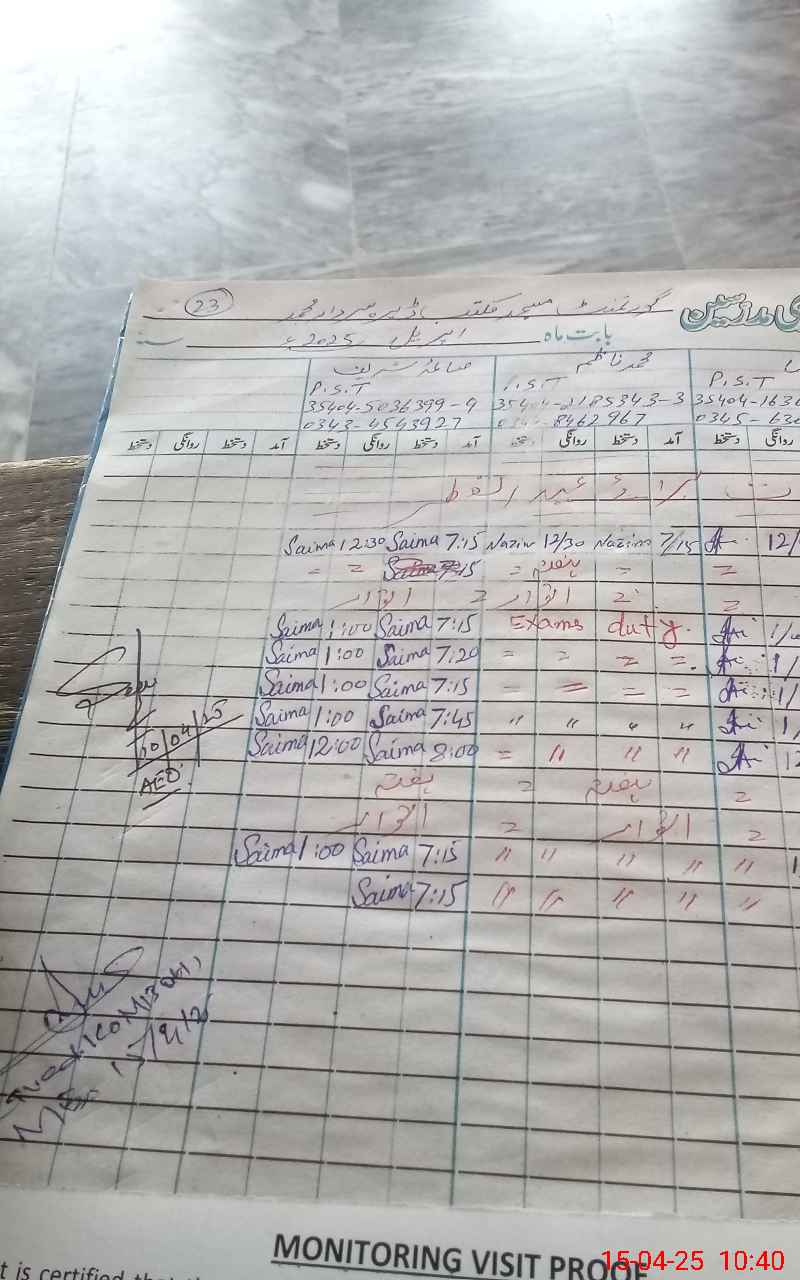 | Attendance Register | Head Teacher | MEA with School | Visit Proof |