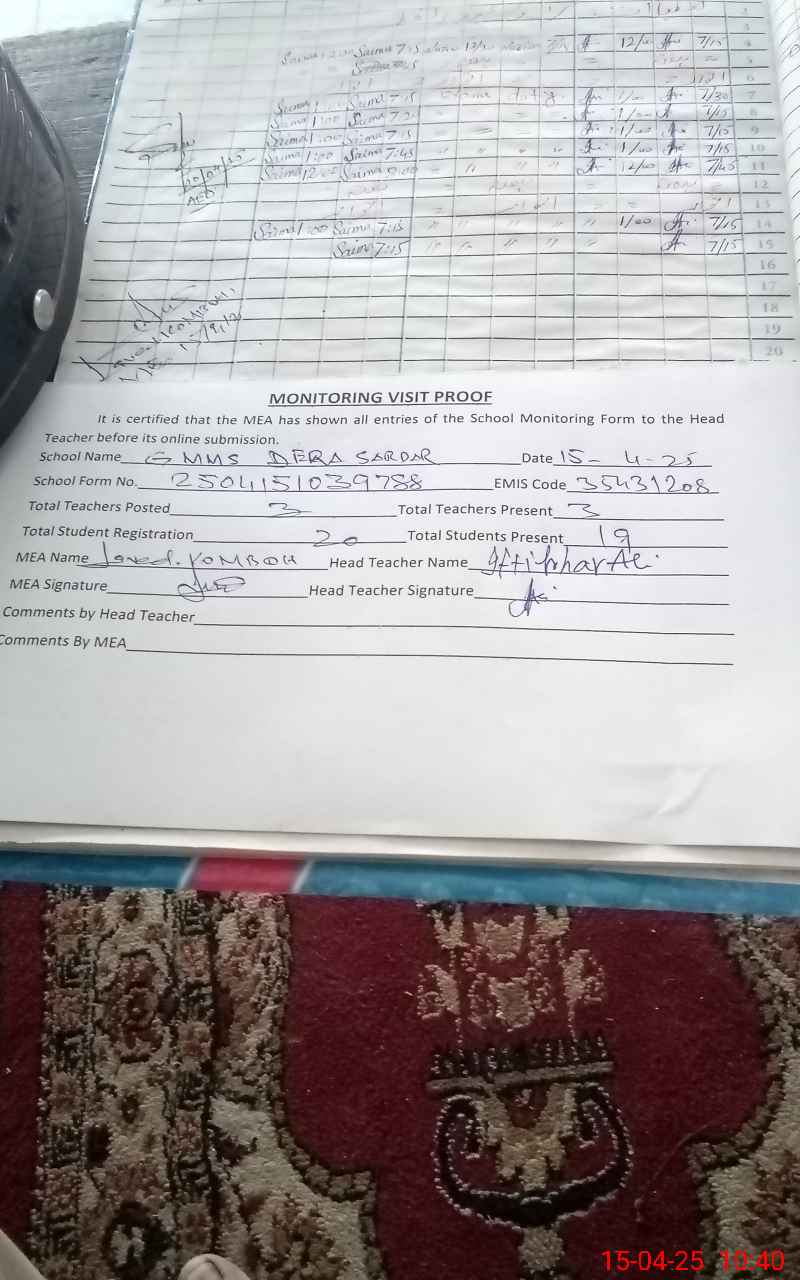 | EMIS Code: 35431208 | Name of School: GMMS DERA SARDAR MUHAMMAD | |||