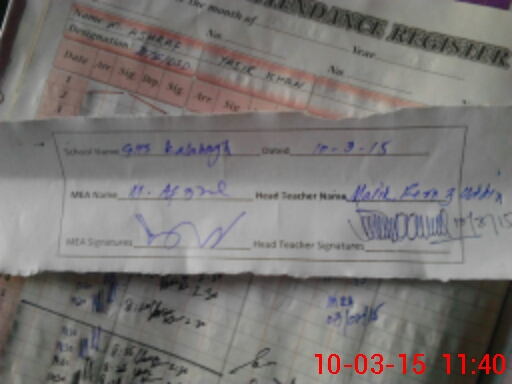 | Attendance Register | Head Teacher | MEA with School | Visit Proof |
