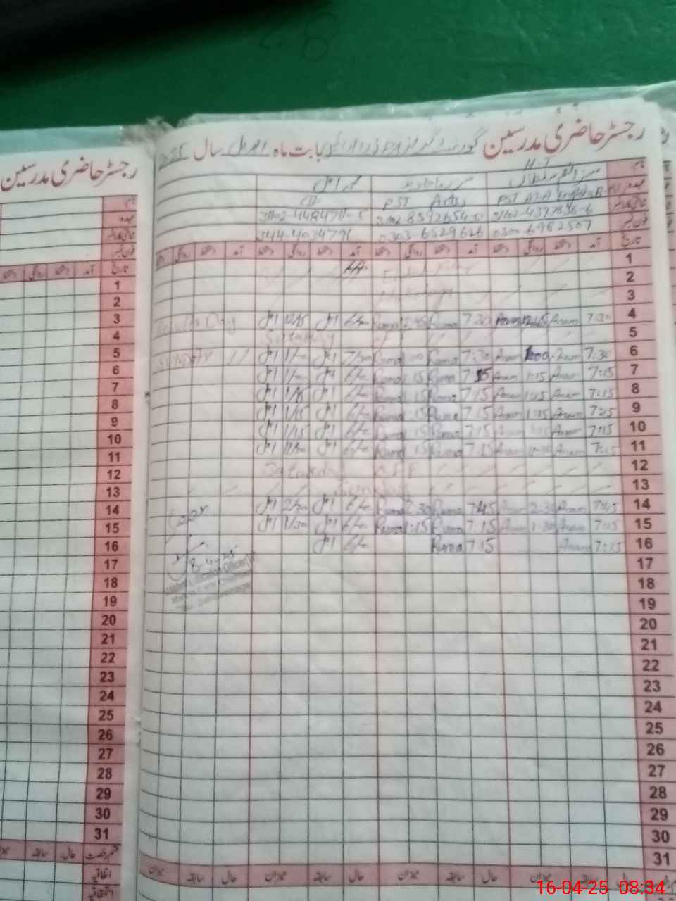 | CNIC | Full Name | Designation | R/C | Absence During Last Calender Month |