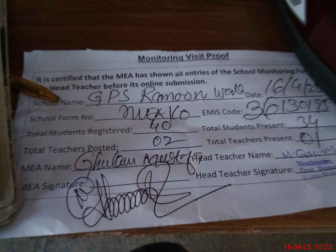 | EMIS Code: 36130195 | Name of School: GPS RAMOON WALA | |||