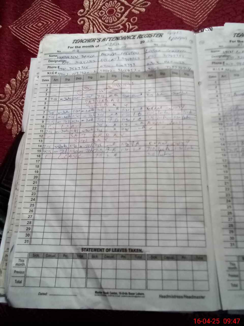| Name: SH**** PA**** Designation: (School Headmaster's/Headmistress's) EST SCINECE MATH Phone/Cell Number: 03**** |
