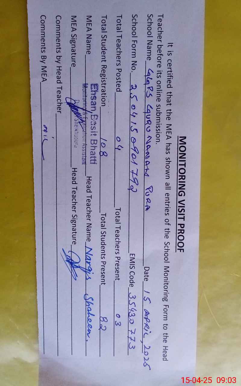 | EMIS Code: 35430773 | Name of School: GGPS GURU NANAK PURA | |||