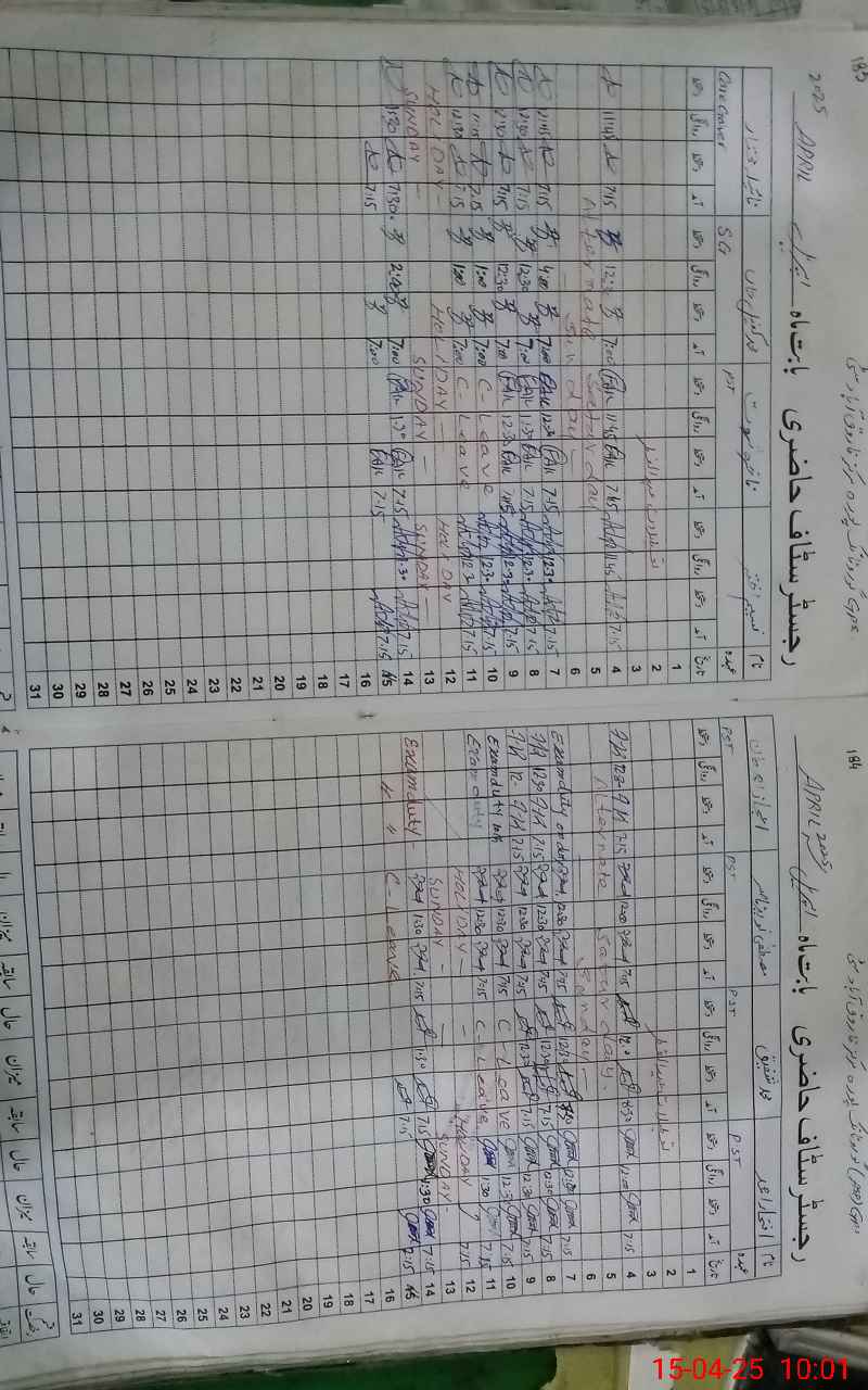 | CNIC | Full Name | Designation | R/C | Absence During Last Calender Month |