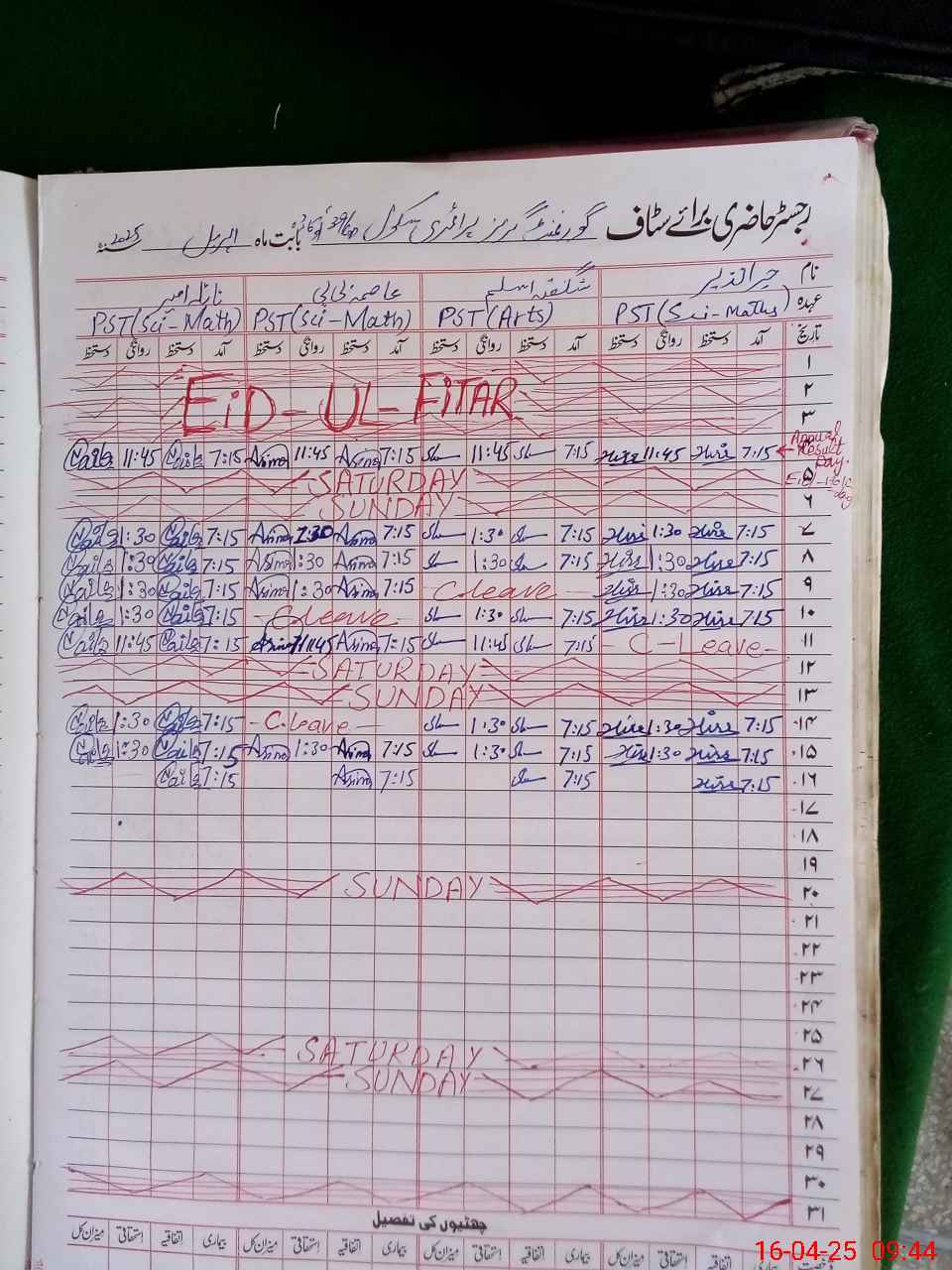 | Leave | Duty | Absent | Maternity | Medical | Ex- Pak |