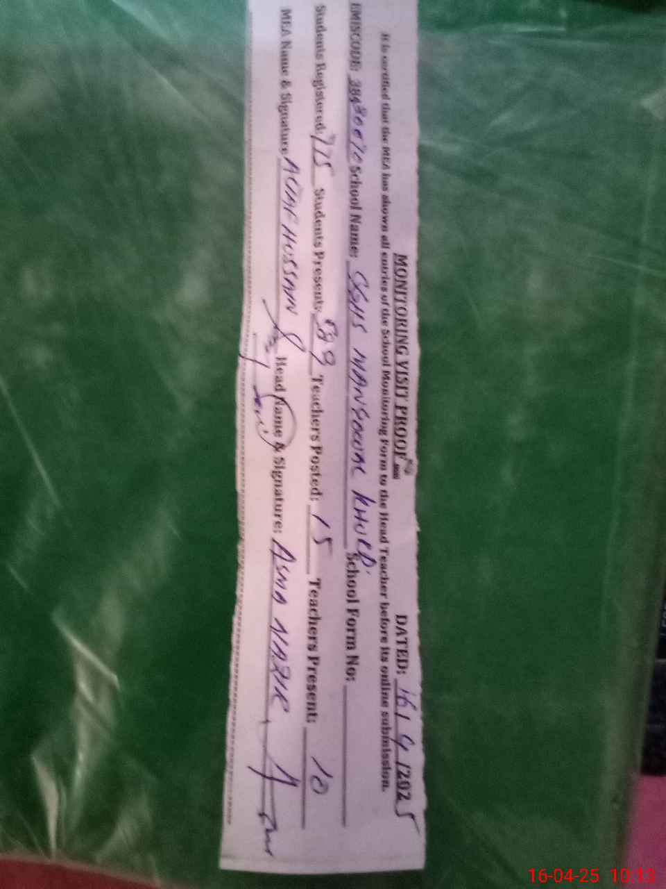 | Certified that this School was Inspected by the Undersigned MEA/DMO Today and the Information Stated Above is as Per Record. | |||||