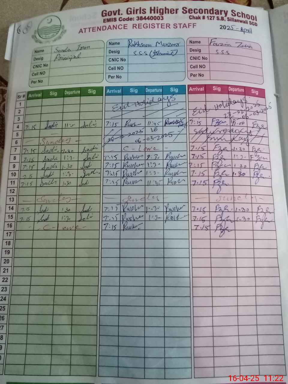 | Name: SA**** IR**** Designation: (School Headmaster's/Headmistress's) I/C PRINCIPAL Phone/Cell Number: 03**** |
