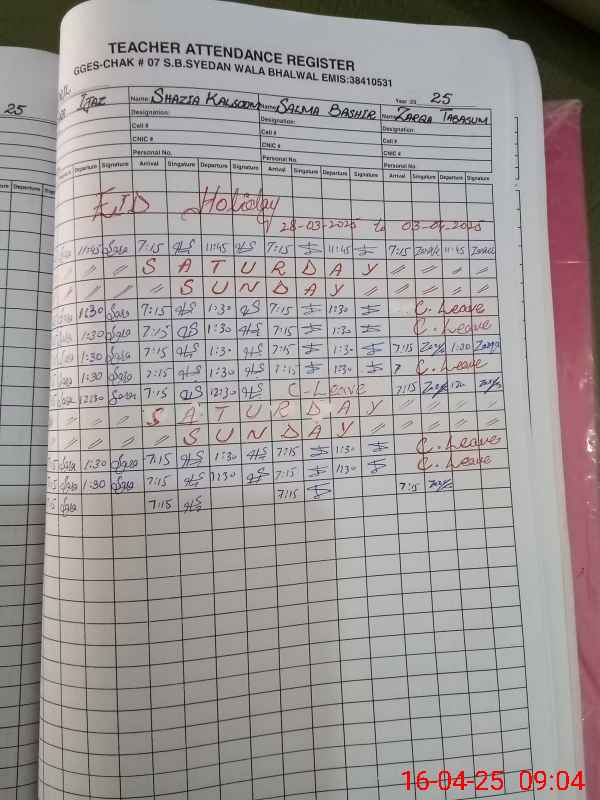 | Name: SA**** IJ**** Designation: (School Headmaster's/Headmistress's) HM Phone/Cell Number: 03**** |