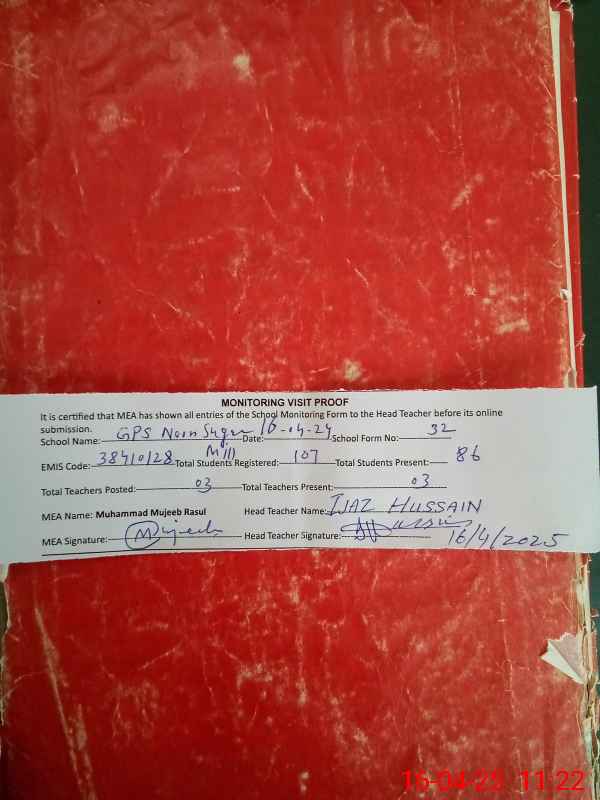 | EMIS Code: 38410128 | Name of School: GPS NOON SUGAR MILL SHAH TOWN | |||