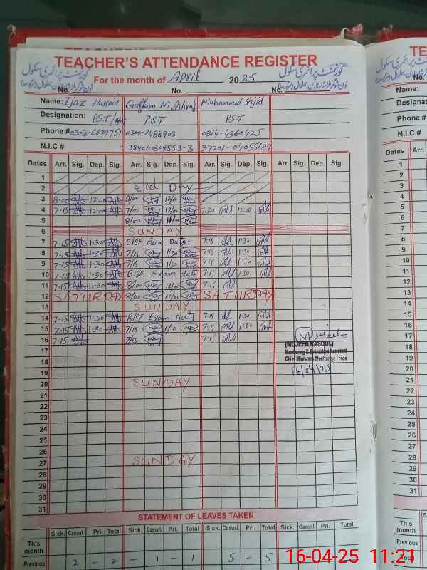 | Name: IJ**** HU**** Designation: (School Headmaster's/Headmistress's) PST Phone/Cell Number: 03**** |