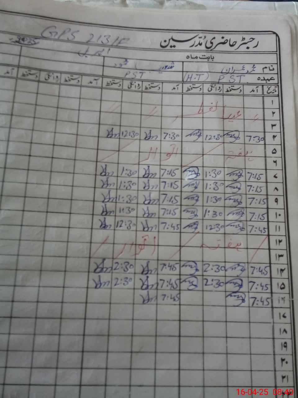 | Name: MU**** IM**** Designation: (School Headmaster's/Headmistress's) Pst Phone/Cell Number: 03**** |